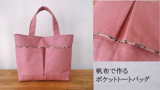 | タイトル | 毎日使えるちょうどいいサイズ!おしゃれトートバッグ!ジグザグ不要, 簡単ポケットつき, 初心者向けの簡単な作り方, DIY, How to make a easy tote bag |