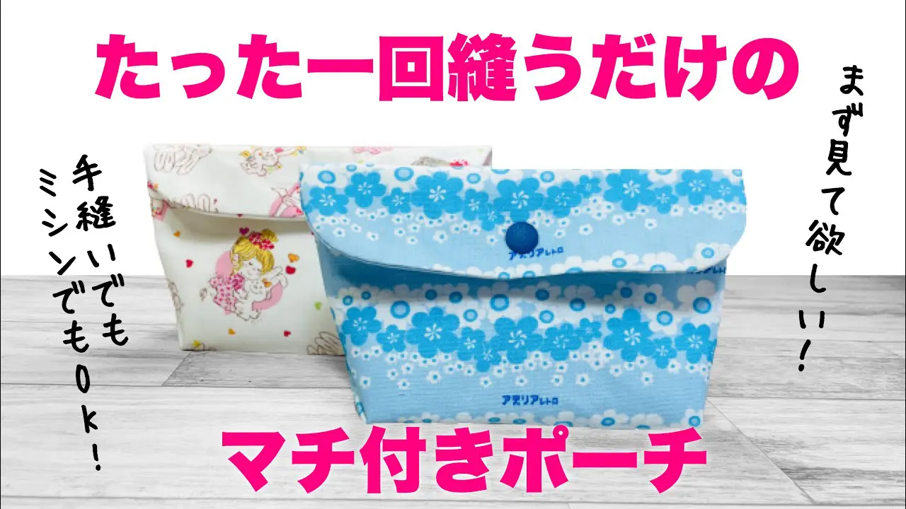 | タイトル | 【マチ付きでもたった1回縫うだけ!】縫うのが苦手な方にも是非見てほしい!手縫いでもミシンでもすぐできるマチ付きポーチの作り方♪How to make a one-sew gusseted pouch |