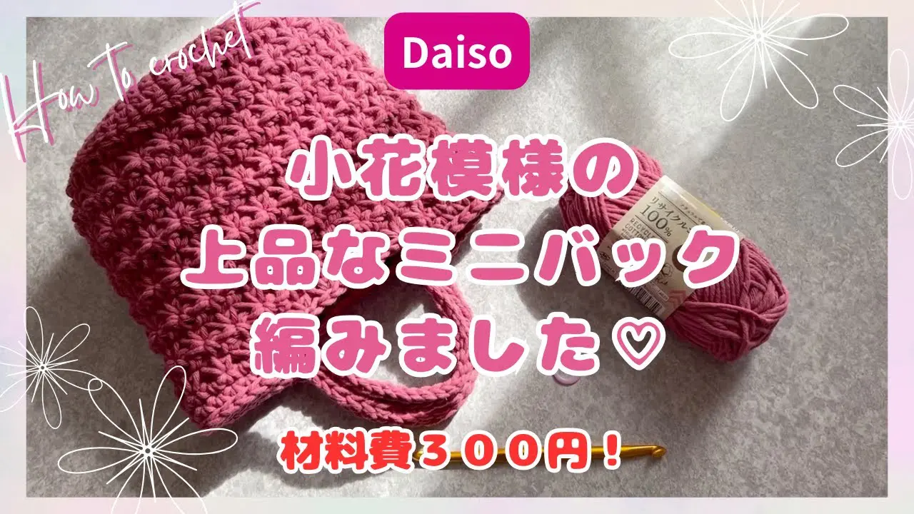 タイトル[ダイソー100均毛糸で小花模様編みバック] 作り方 簡単 #howto #100均 #編み方 #かぎ針編み #bag #daiso #crochet #seria #diy #flower #花
