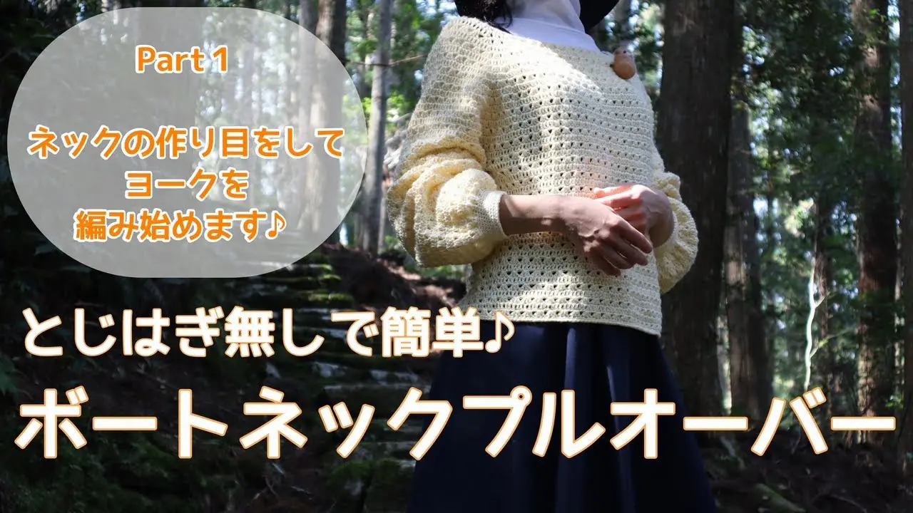 | タイトル | とじはぎ無しで簡単♪ネックから編むトップダウンのボートネックプルオーバー【かぎ針編み】【 Part.1 作り目をして ヨークを編みます 】crochet pullover ~編み物 Vlog 163~ |