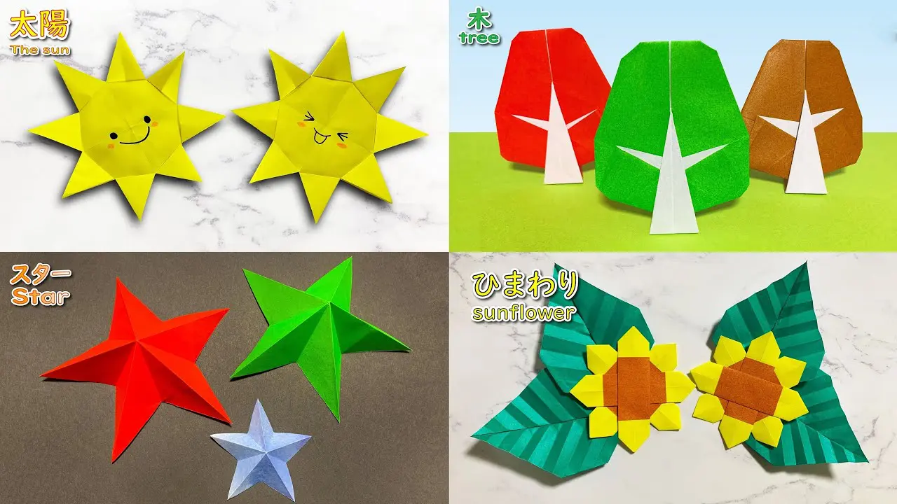 【折り紙】簡単 太陽🌞木🌲スター★ひまわり🌻 How to make paper sun#たいよう#Sun#Sol#солнце#태양#折り方#おりがみ#origami#摺紙#종이접기#DIY#作り方 – Origami hana’s channel