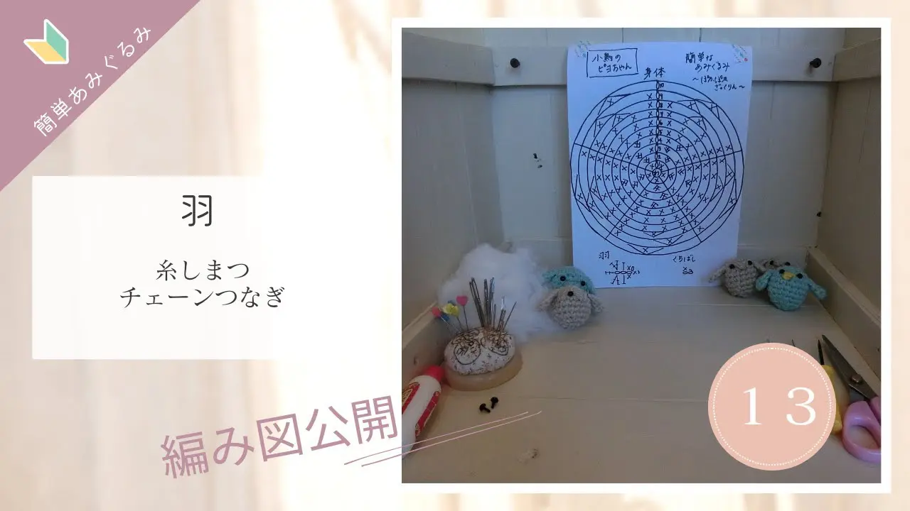 タイトル簡単なあみぐるみの作り方⑬~小鳥の羽(チェーンつなぎ)
