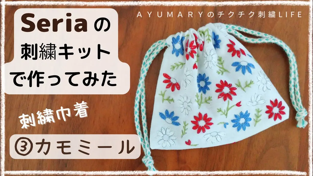 | タイトル | 【巾着シリーズ・Seriaの刺繍キット ③カモミール】刺繍ポーチの作り方/セリア/ハンドメイド/初心者/embroidery |