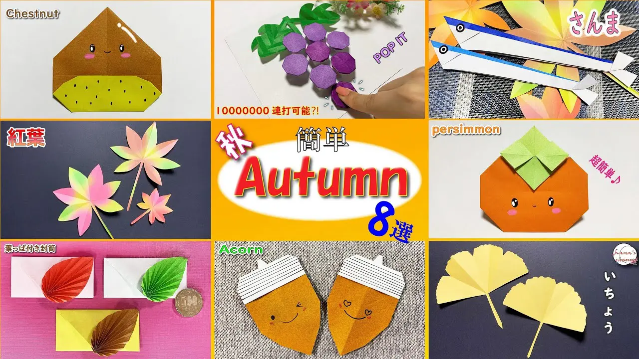 | タイトル | 【簡単折り紙】秋のまとめ3【Easy Origami】How to make Autumn3 간단한 종이접기 가을 秋 단풍 简单的折纸 枫叶 秋 おりがみ どんぐり さんま DIY 紅葉 葡萄 柿 |