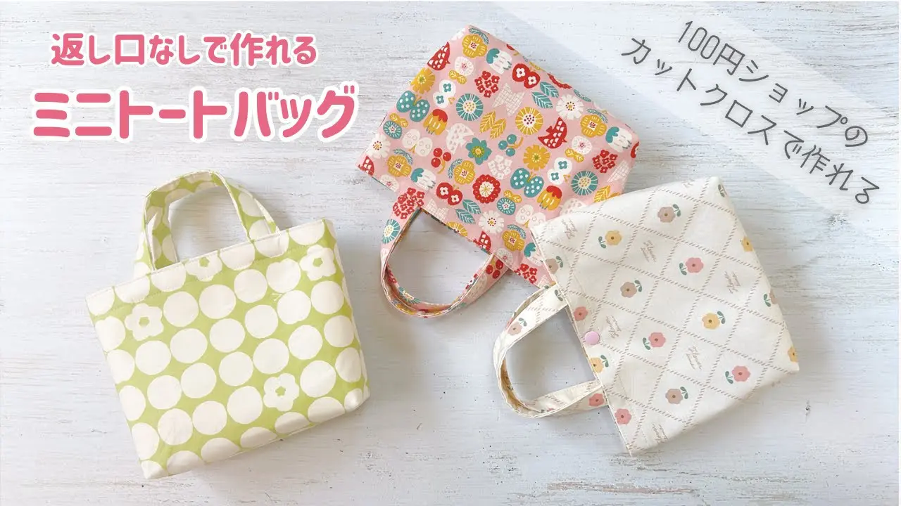 | タイトル | 【返し口なしで作れる】裏地付きミニトートバッグの作り方 / 100円ショップのハギレで作れる |