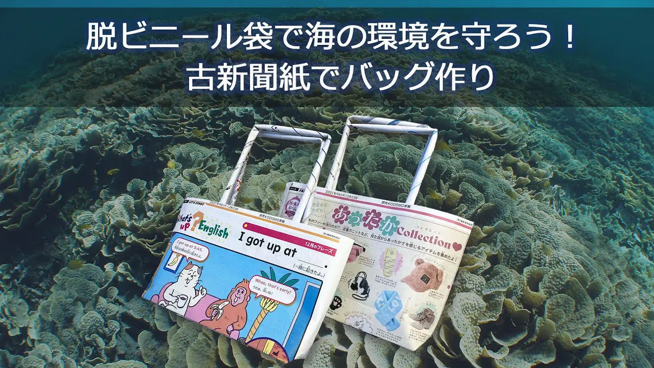 | タイトル | 新聞紙バッグの作り方~脱ビニール袋で海の環境を守ろう! |
