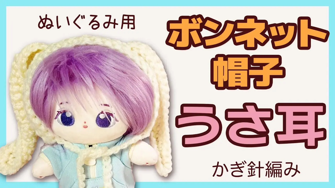 【かぎ針編み】うさ耳ボンネット帽子*簡単かわいいぬいぐるみ用 – ひつじと毛糸の物語