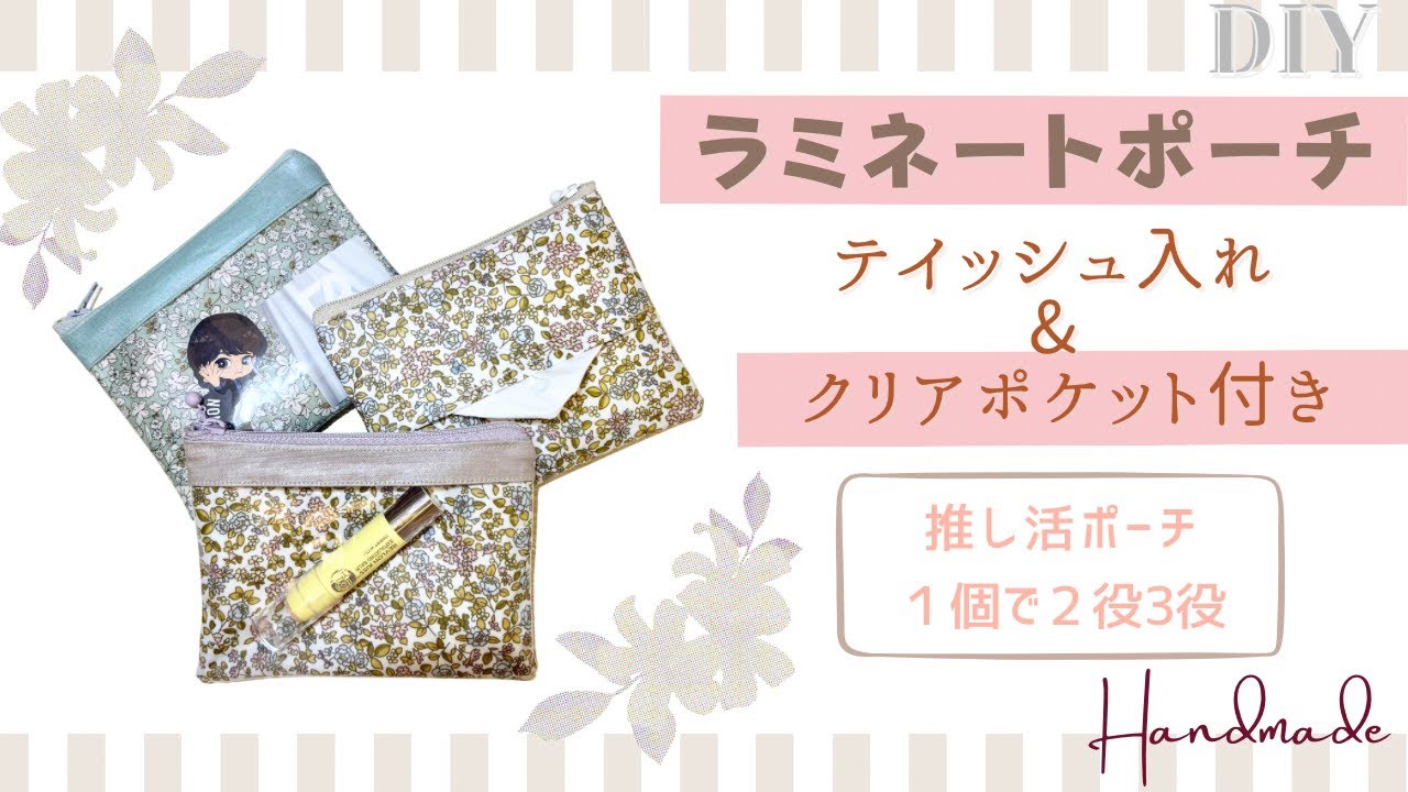 | タイトル | 【ハンドメイド】ラミネートポーチの作り方✴︎ポケットティッシュケース&クリアポケット付き✴︎推し活ポーチ |