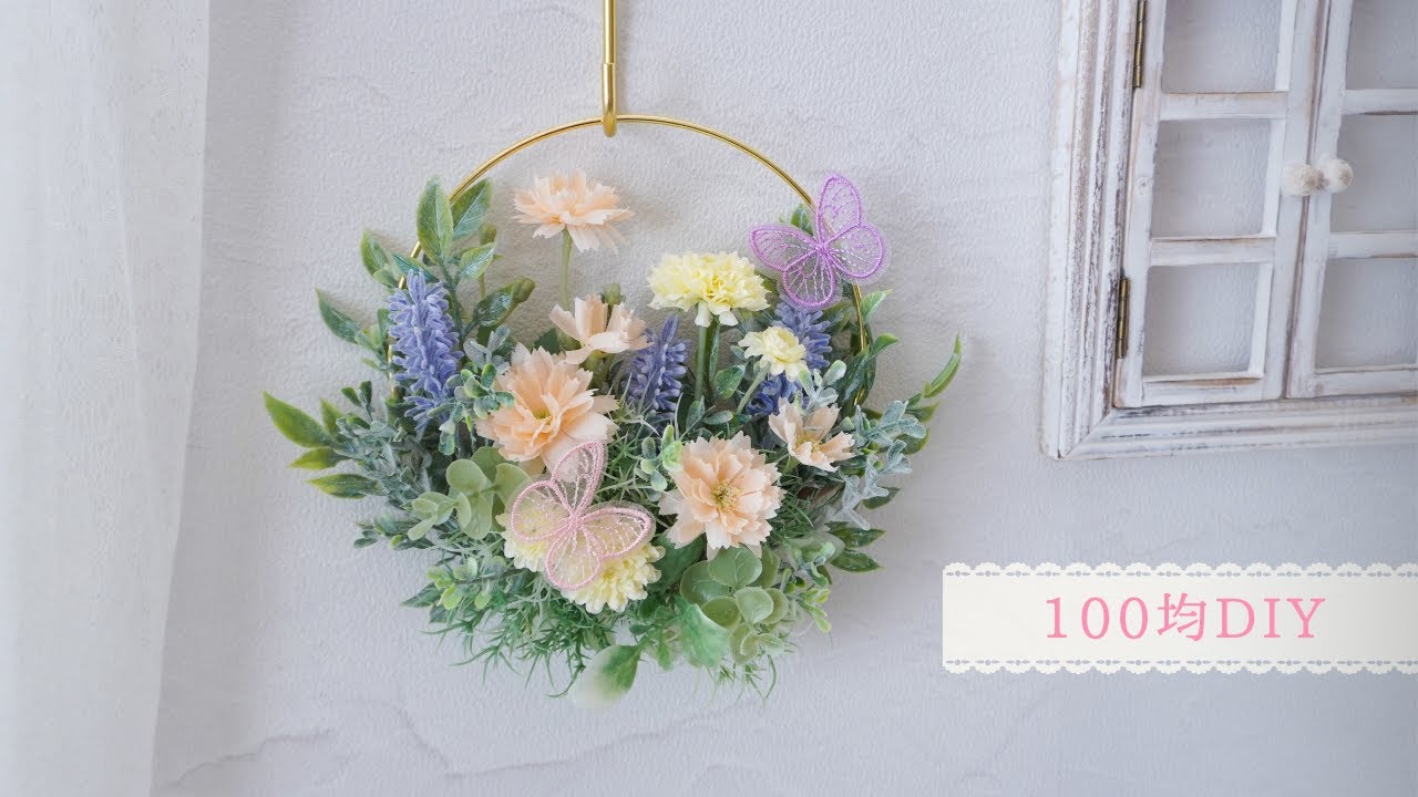 | タイトル | 【100均造花】フープリースの作り方/ワイヤ不要/グリーンマットで簡単おしゃれ/手作りインテリア |