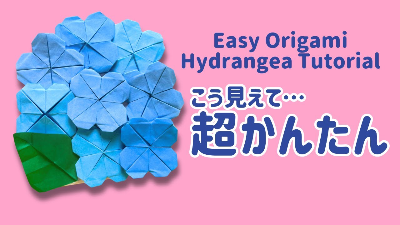 タイトル【折り紙】簡単で可愛い!あじさいの折り方|花|6月|梅雨(音声解説あり)Origami hydrangea | Easy Tutorial