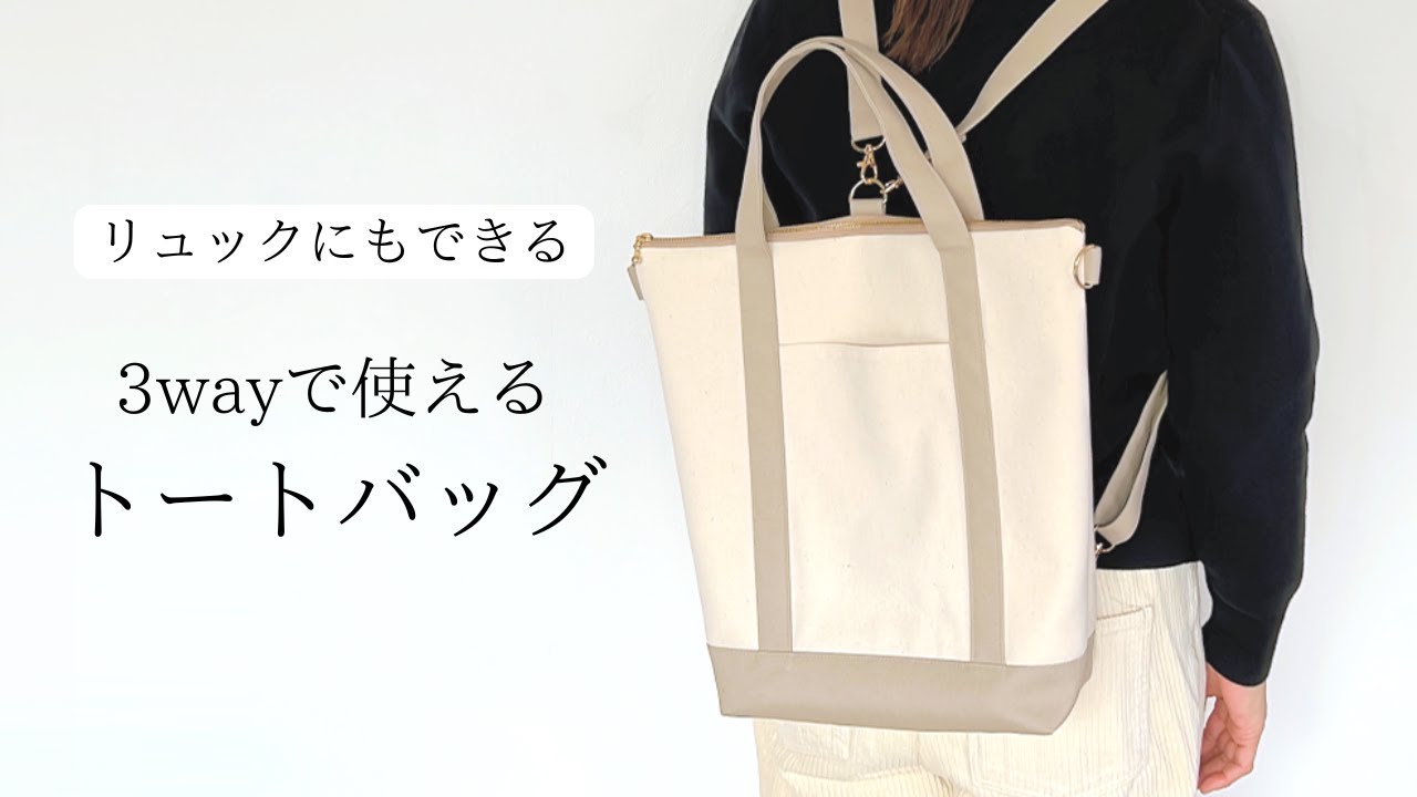 | タイトル | 【リュックにもできる】3wayで使えるファスナートートバッグの作り方 / A4サイズが入る |