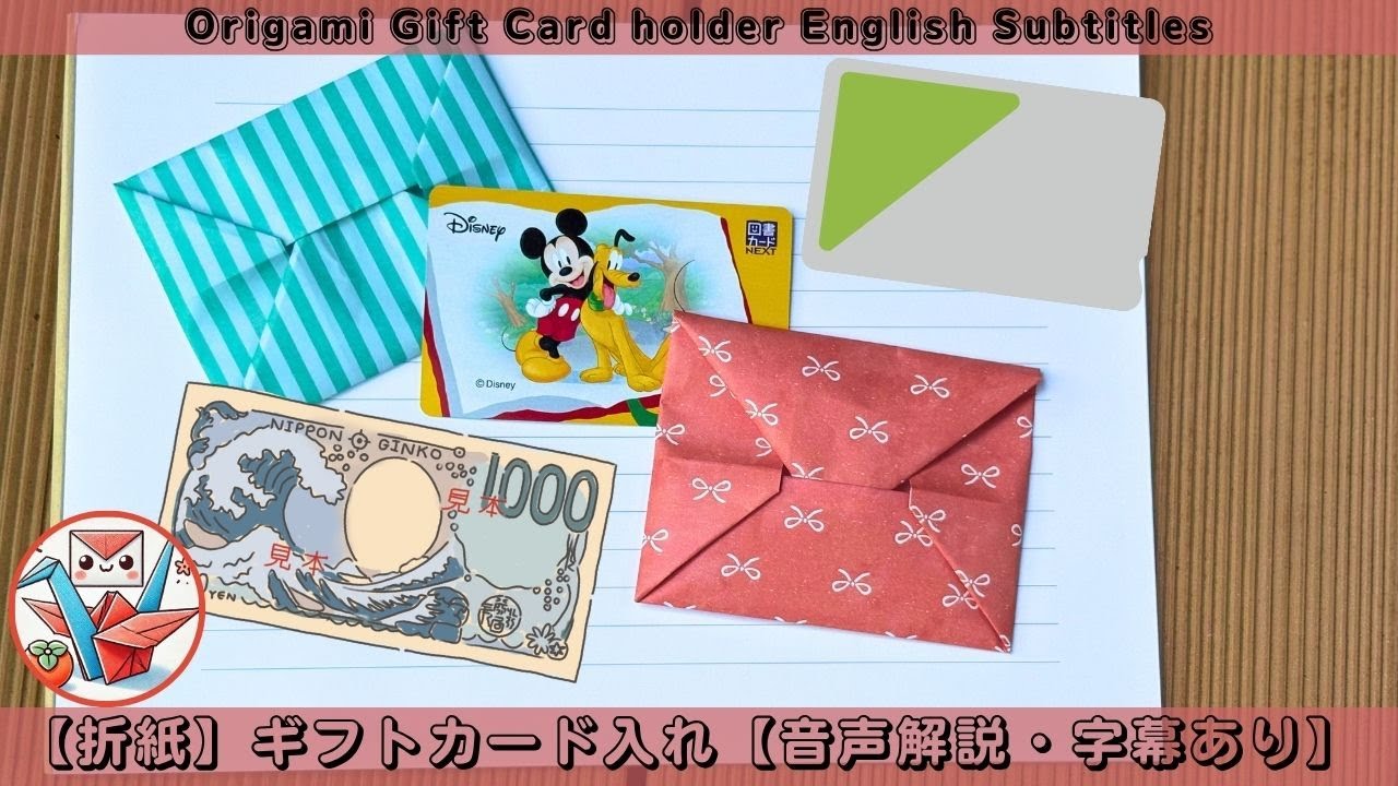 タイトル【折り紙1枚のみ】簡単!ギフトカード入れ/ポチ袋【音声解説・字幕・英語字幕】