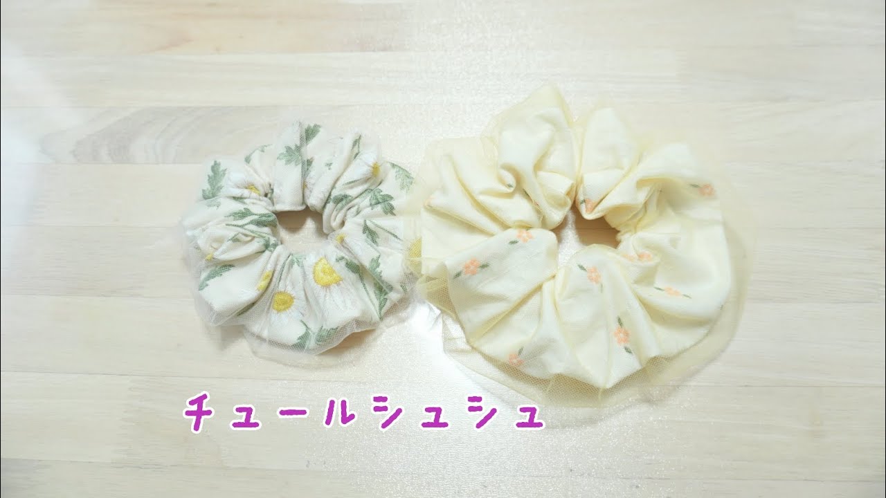 タイトルチュールシュシュの作り方 簡単 親子リンク ボリュームシュシュ ヘアゴム ヘアアクセサリー