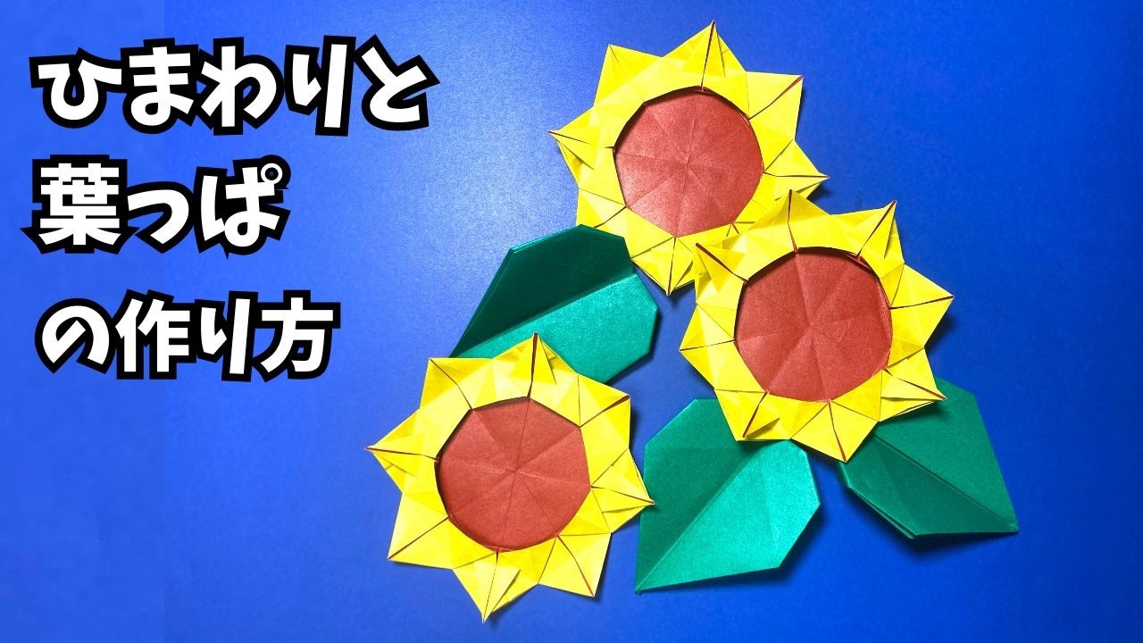 タイトル花の折り紙 ひまわりと葉っぱの簡単な作り方~How to make an easy origami sunflower and leaves~