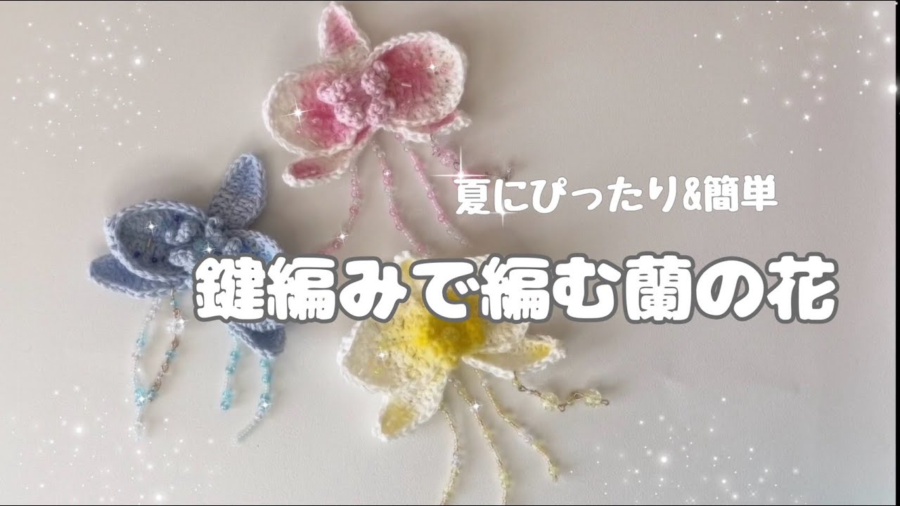 タイトルかぎ針編みで胡蝶蘭の花を簡単に作ろう|夏アクセにぴったり! #かぎ針編み #編み物初心者 #胡蝶蘭 #花のモチーフ #ハンドメイド #夏のアクセサリー #編み方解説