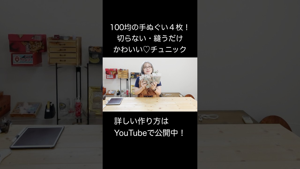 | タイトル | 【超初級】百均の手ぬぐいで簡単にチュニック作っちゃいました! |
