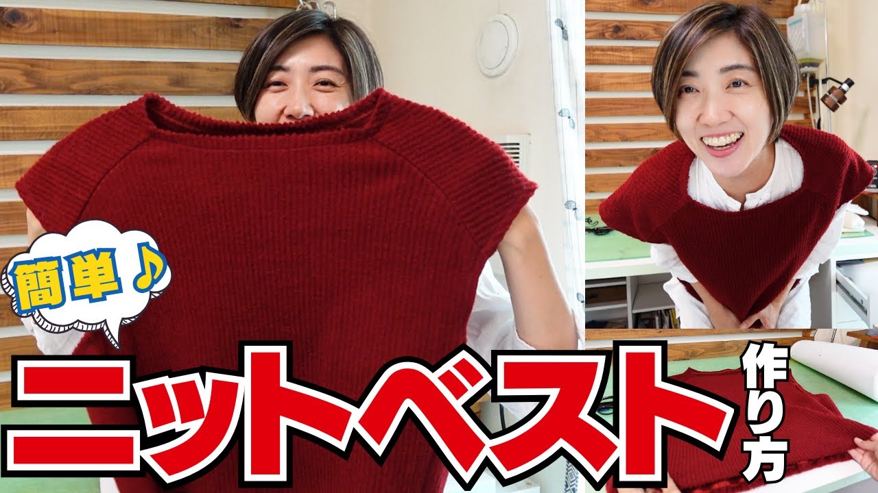タイトル【 超簡単 】ニットベストの作り方を解説します♪(マルットベスト)|ただ服をつくる 洋裁教室