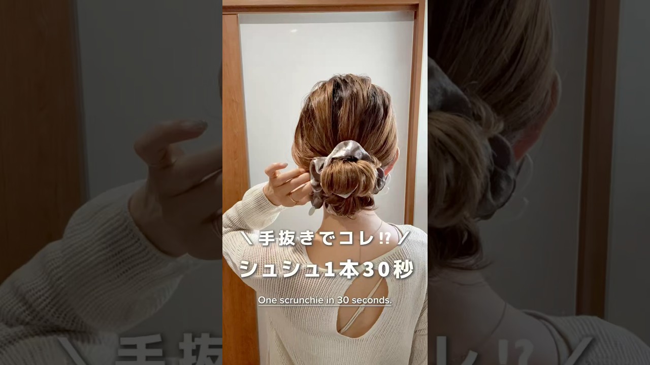 タイトル【手抜きでこれ】シュシュ1本30秒#ヘアアレンジ#簡単ヘアアレンジ#シュシュアレンジ #hair#hairtransformation #hairstyle #scrunchies