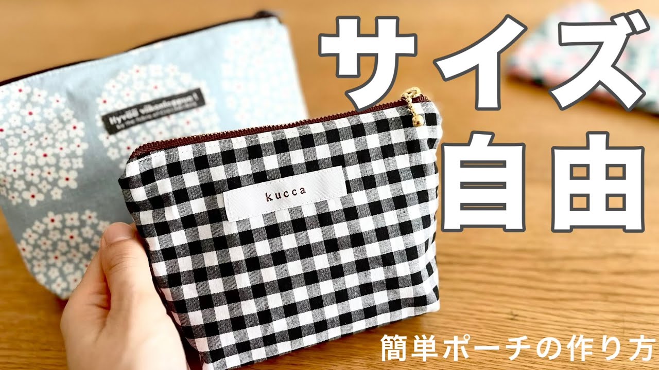 | タイトル | 【好きなサイズで作れる】簡単な裏地付きポーチの作り方 | マチあり大きさ自由 | 初心者さんにもおすすめ! |