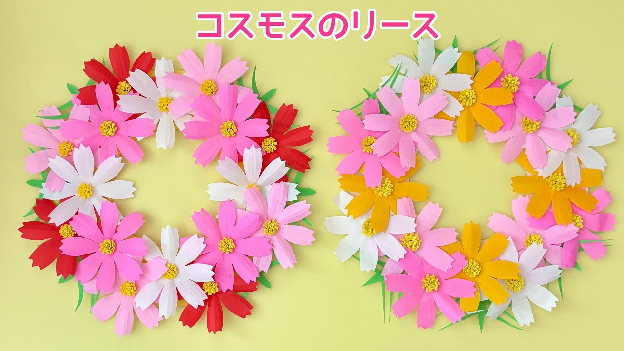| タイトル | (音声付き)折り紙などで作る秋桜のリースの作り方/How to make a paper cosmos wreath |