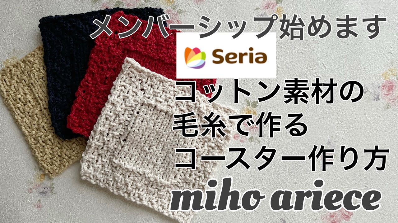 【編み物】【棒針】【DIY】セリアの毛糸で作るコースター コットン100% 作り方 handtowel knit knitting stick needle knit hat yarn cotton – miho ariece 【DIY accessory】