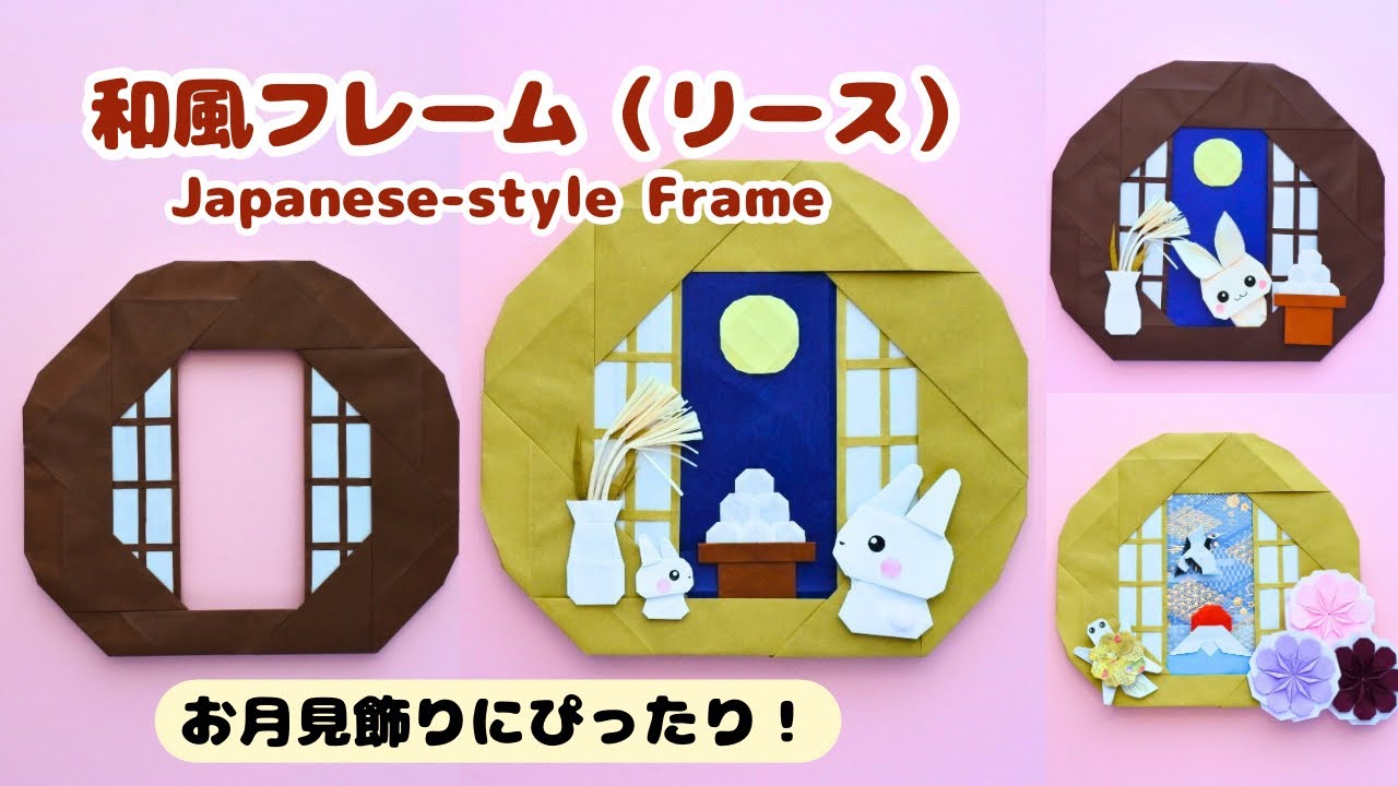 タイトル【折り紙】和風フレーム(リース)の作り方*お月見や季節の飾りにぴったり!Origami Japanese-style Frame (Wreath)