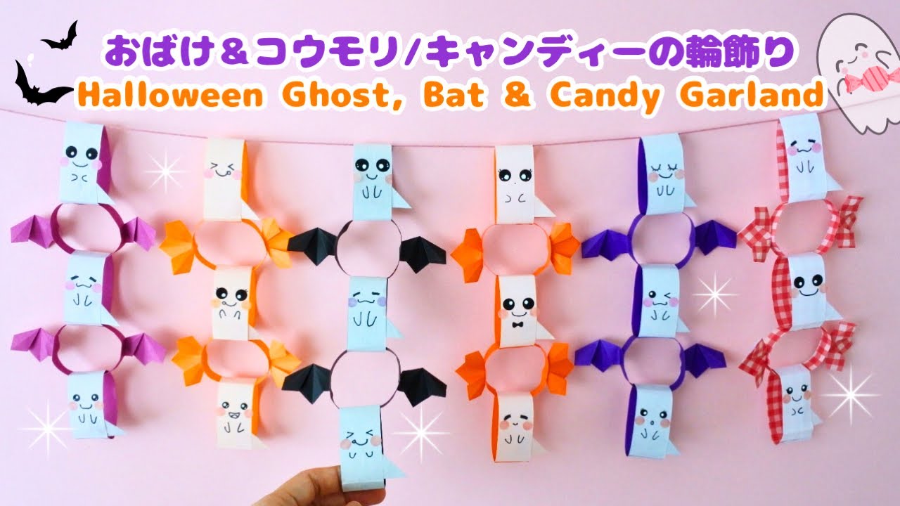 【折り紙1枚】簡単!おばけ&コウモリ/キャンディーのハロウィン輪飾り🎃|Easy Origami Halloween Garland with Ghosts, Bats & Candies – ちっしー折り紙 Chisshy Origami