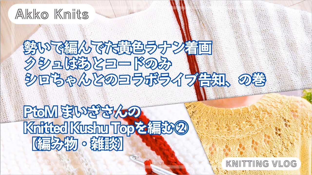 | タイトル | 【編み物・雑談】黄色ラナンキュラスの着画、クシュはあとはコードのみ、かぎ針簡単コード編み方、コラボライブ告知、の巻 PtoMのまいざさんのKushu Topを編む② |