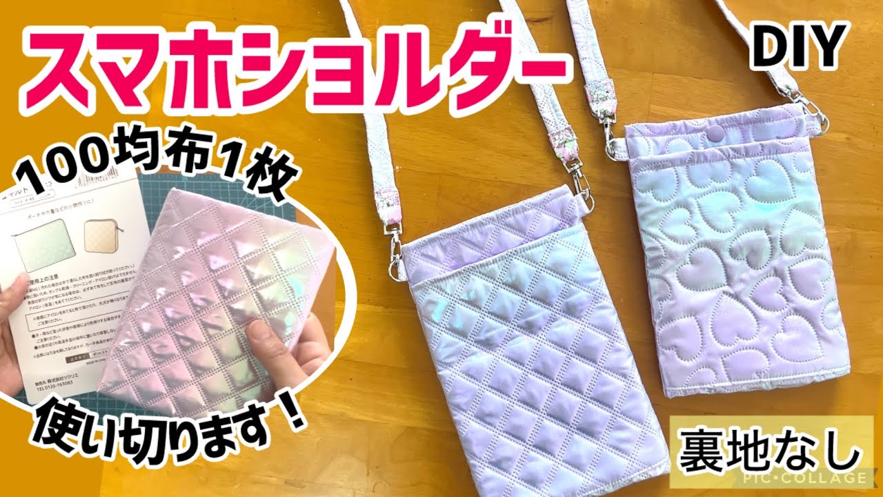 | タイトル | 100均キルト1枚でショルダー紐まで作れちゃう!簡単スマホショルダー(裏地なし) |