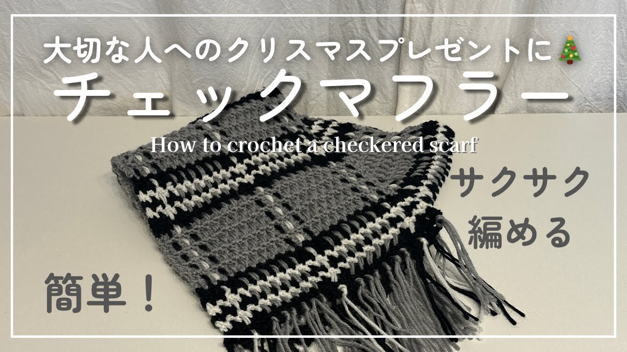 【かぎ針編み】簡単!綺麗なチェック模様のマフラーの編み方🧣大切な人へのクリスマスプレゼントに🎄/How to crochet a checkered scarf – Momiii – Knitting Life –