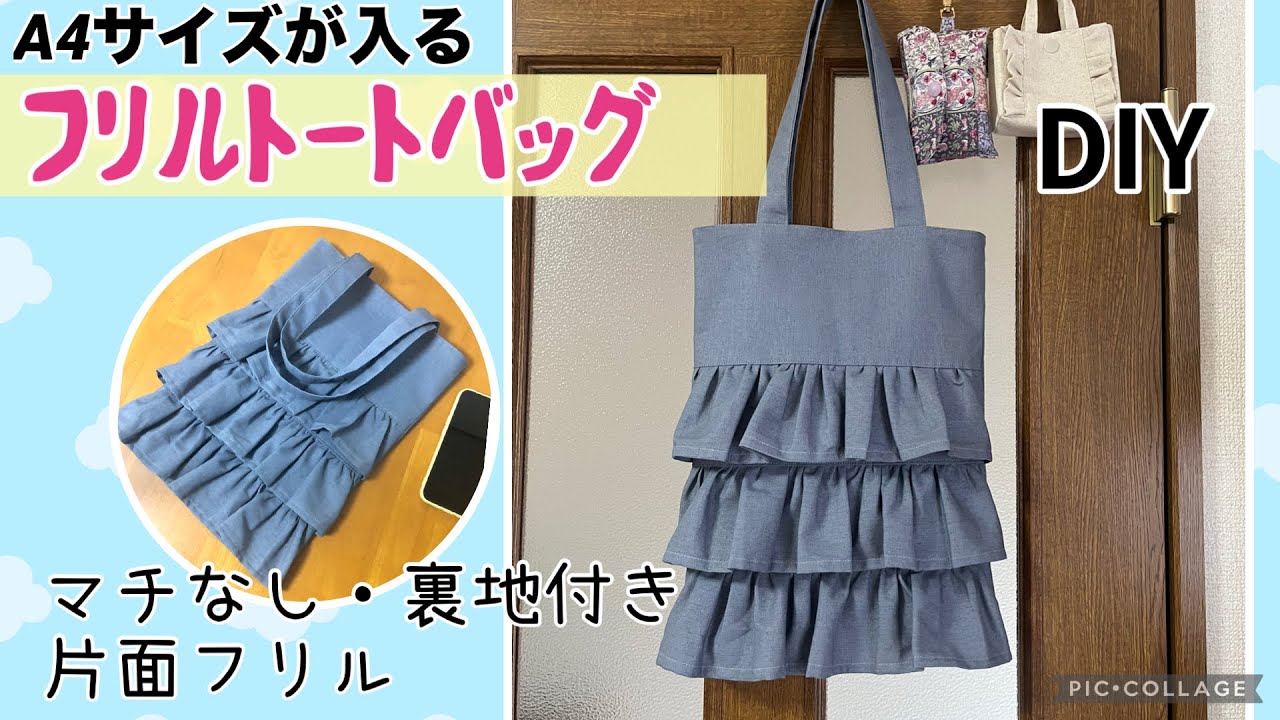 タイトル50㎝でできる♡簡単フリルトートバッグ作り方(A4サイズがはいる)