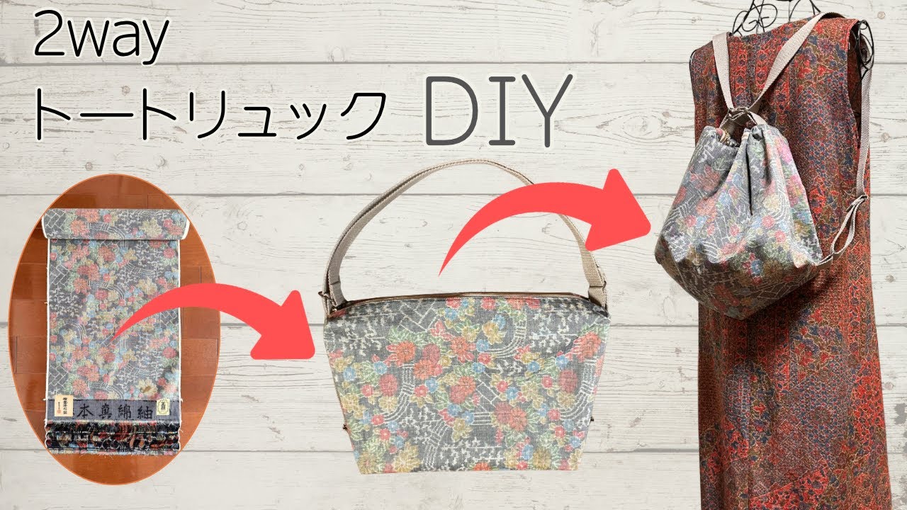 | タイトル | 反物有効活用!トートバッグからリュックサックに!簡単♪2wayトートリュックの作り方【着物リメイクバッグ】How to make a Pull-Only Shoulder & Backpack DIY |