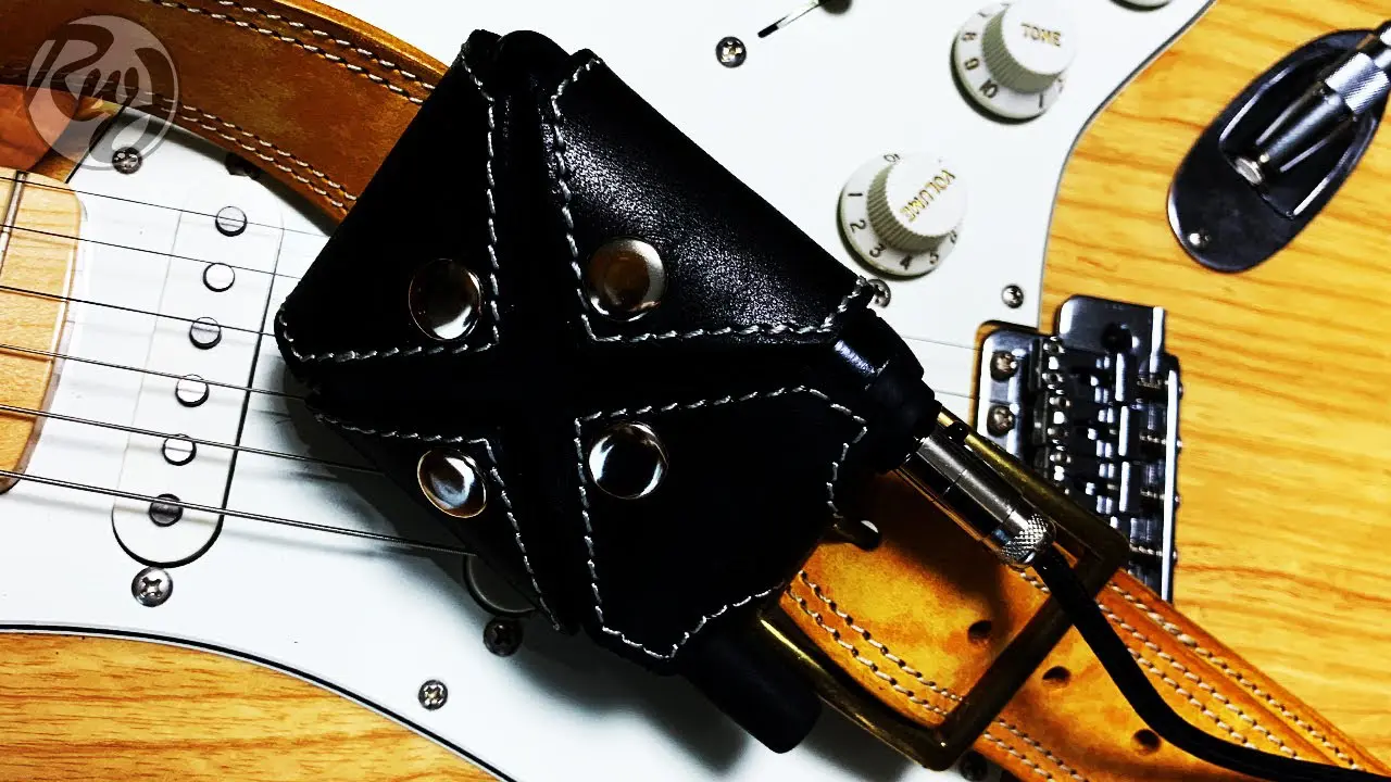 タイトルレザークラフト 型紙 | ギタリストとベーシストの為に、Line6 Relay G50 ワイヤレストランスミッターホルダーを作りました。 【Leather craft free pattern】