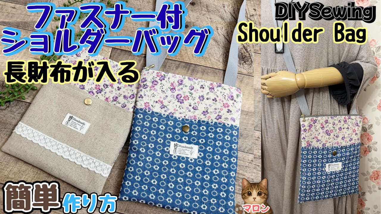 | タイトル | ファスナー付ショルダーバッグ|長財布が入る軽量バッグの作り方 / DIY Quilted Shoulder Bag with Zipper.ショルダーバッグ簡単作り方 |