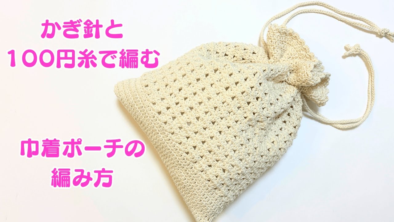 | 説明文 | この動画では、初心者さんで編める巾着ポーチの編み方をご紹介します。サイズは幅が約21センチ高さは底から約25センチになりました。糸はセリアさんで購入したエンジェルコットンのホワイトで編みました。使用し... |