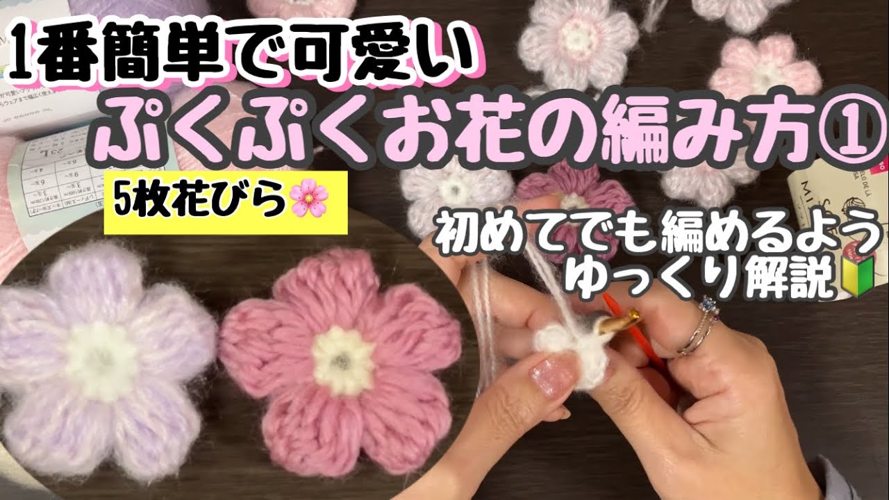 🔰一番簡単なぷくぷくお花の編み方①★『5枚花びら』バージョン【かぎ針編み・編み物】 – まゆみのほのぼの編み編み【MAYUMI crochet】