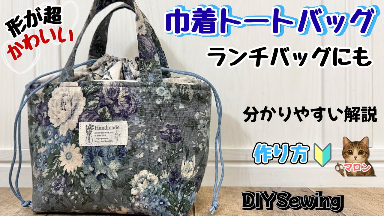 | タイトル | 巾着トートバッグの作り方Drawstring Tote Bag DIY Easy Sewingランチバッグにもなる便利デザイン、お弁当袋作り方、ランチバッグ作り方、簡単 |