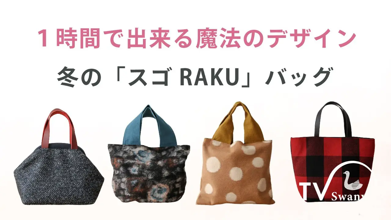| 説明文 | スワニーTVをご視聴いただきありがとうございます!1時間でできる!冬の 「スゴRAKU」バッグのご紹介です。スワニーでは実店舗とオンラインショップにて、 1000円のお買い上げごとに1枚寸法図を差し上... |