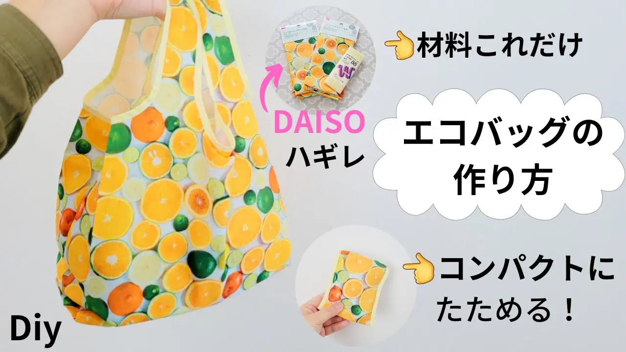タイトル【ダイソーハギレ2枚で】エコバッグの作り方 ecobag tutorial