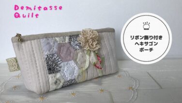 ポーチ リボン飾り付きヘキサゴンポーチ♪手縫いで仕上げるパッチワーク。少し大きめ25㎝ファスナーです – デミタスキルトDemitasseQuilt 出典:YouTube / デミタスキルトDemitasseQuilt 2025.07.19 ポーチ