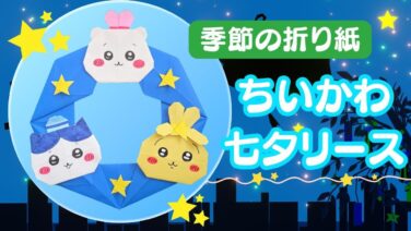 リース 【ちいかわの折り紙】七夕リースの簡単かわいい作り方♪季節の飾りや製作におすすめ!Easy Chiikawa Origami – Cute Tanabata Wreath Folding – Homemade Origami