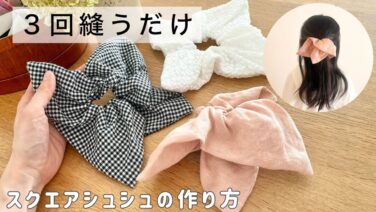 シュシュ 3回縫うだけ!簡単で可愛いスクエアシュシュの作り方【大人も子供も使えるサイズ】EASY DIY Square Scrunchie Tutorial – kuccaのハンドメイド服・小物
